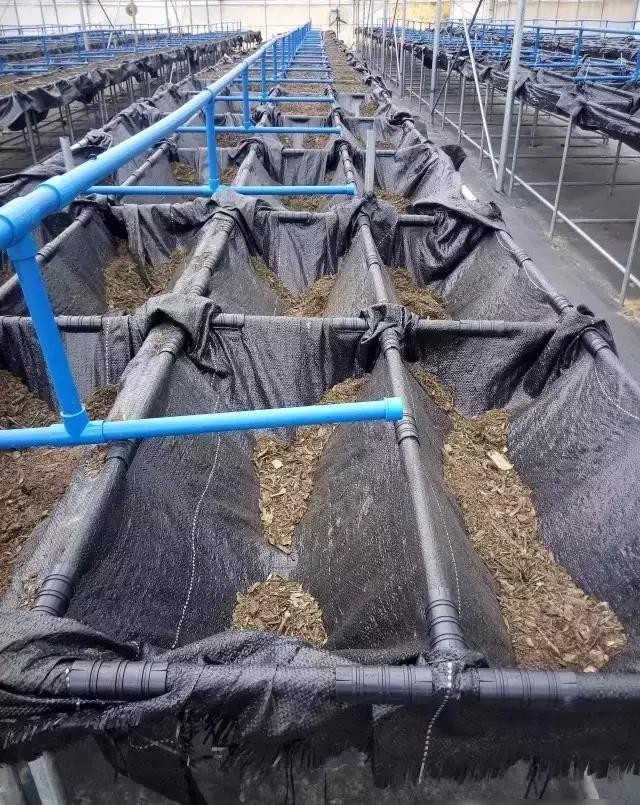 由金屬主干管道、閥門和滴灌帶支管組成。一般每個無土栽培槽上設兩根灌帶, 利用自來水設施或1 米水壓的貯水池供水滴灌, 也可用貯水池加小水泵的方式供水, 還可用水井直接給幾個溫室同時供應。