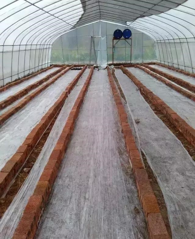 用磚壘槽, 南北方向延長, 內寬根據(jù)不同種類蔬菜而定, 如瓜類為48 厘米(三磚長), 小型綠葉菜類為72 厘米, 長度根據(jù)溫室的跨度而定, 一般長5 米左右; 高度約20 厘米; 槽間距因菜而異, 如黃瓜為1.2 米, 油菜為60 厘米。底部中央一條深約10厘米的淺溝, 略傾斜, 以利排水; 溝底鋪上一層塑料薄膜, 以防止土傳病蟲害的傳播。